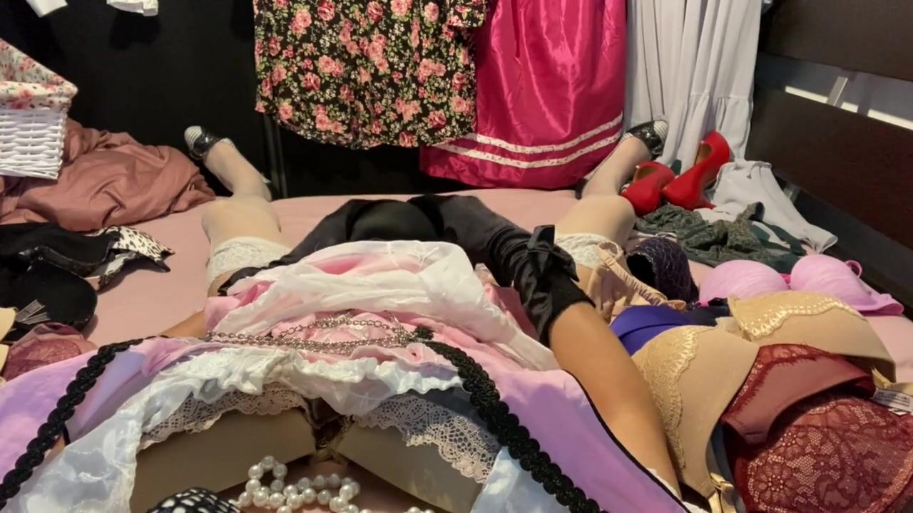 MASTURBATION OF TRANSVESTITE WITH BRA ON, SNIFFING BRAS, FUCKING BRAS AND CUM IN BRAS POV 2