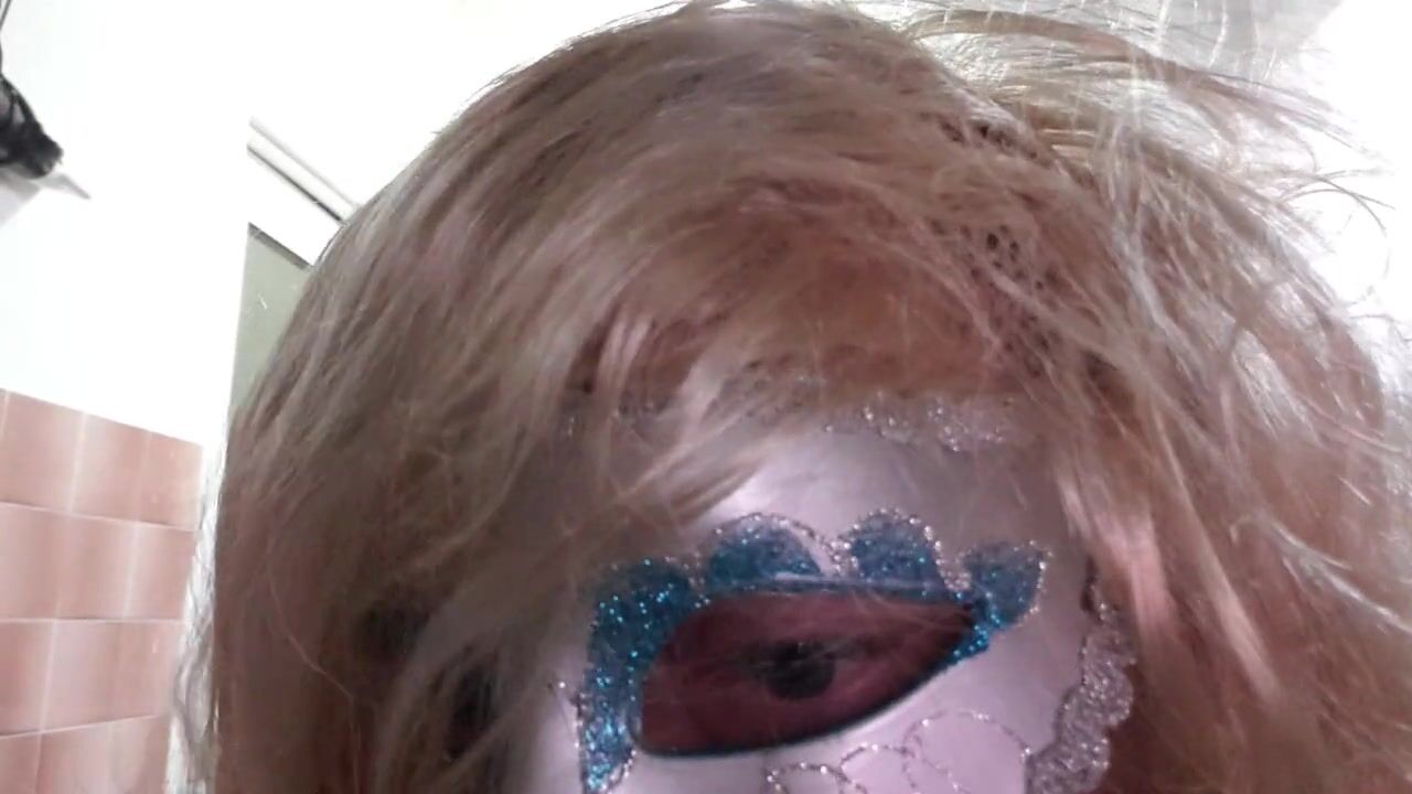 femboy in red lipstick touching clitty in blue bra squeeze tits sissy collar