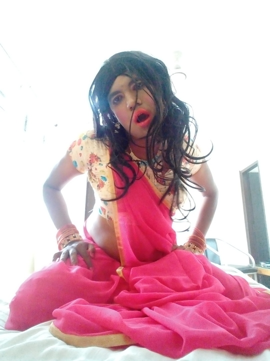 . Priya sissy crossdresser banglore in sexy pink saree playing with dildo sucked deeply and fucked.
