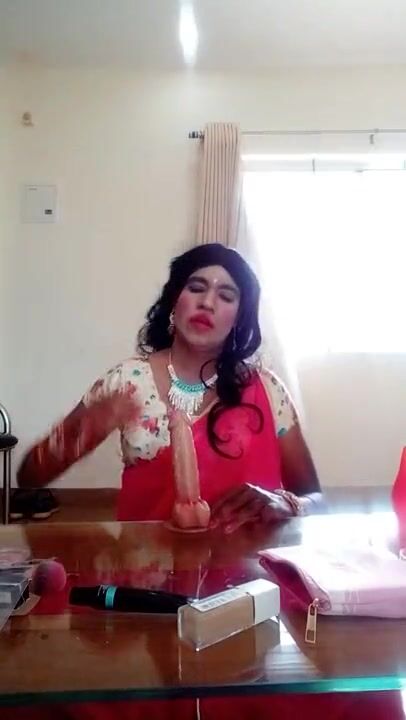 . Priya sissy crossdresser banglore in sexy pink saree playing with hot sexy dildo fucking very hard and sucking deepthrought