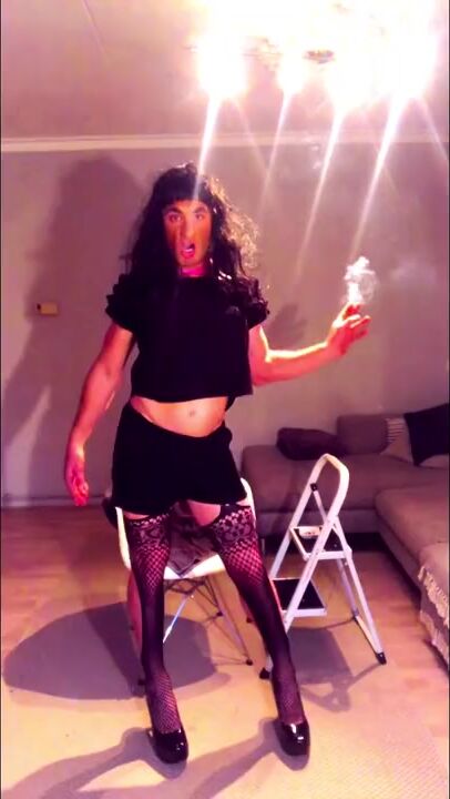 . The Smoking CockSlut is back. Looking for some black dicks to fuck and suck while she keeps on smoking and making her signature crazy mean faces while doing so.