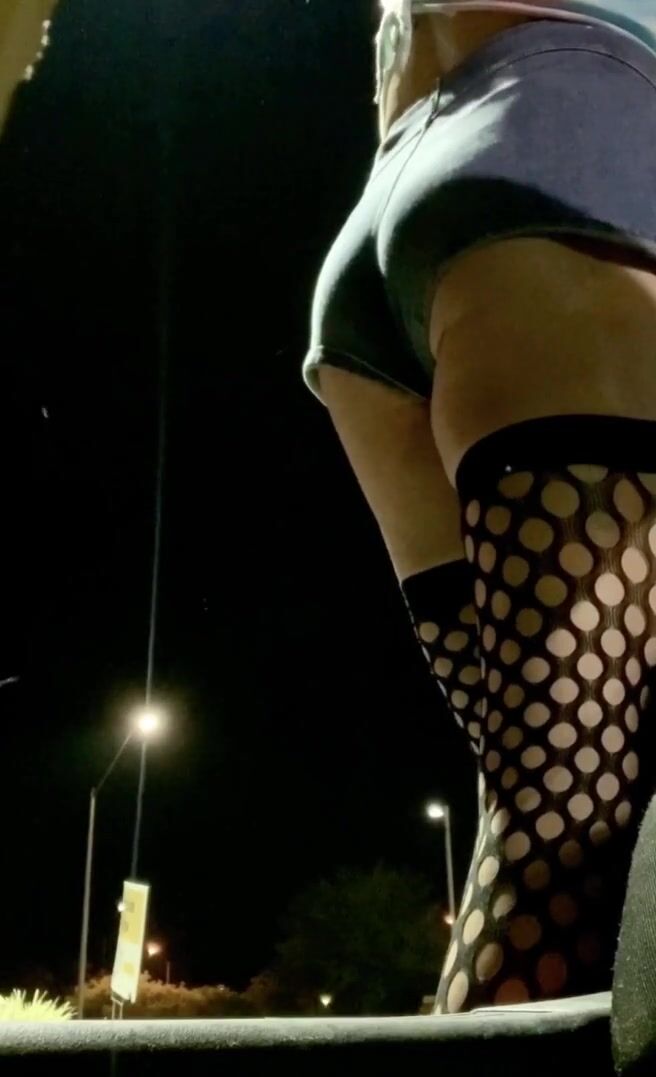 SEXY ASS TIGHT JEAN SHORTS AND FISHNETS ON PUBLIC DISPLAY HOT SISSY TS