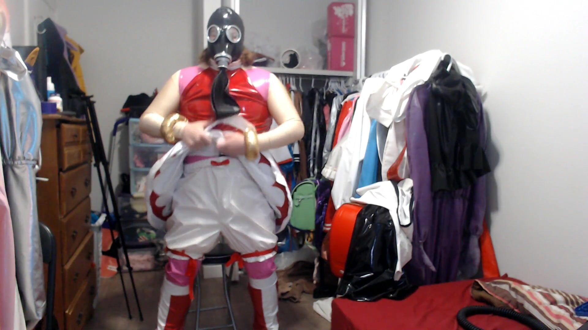 PVC SISSY COSPLAY AMY ROSE GASMASK BREATHPLAY WITH VIBRATOR