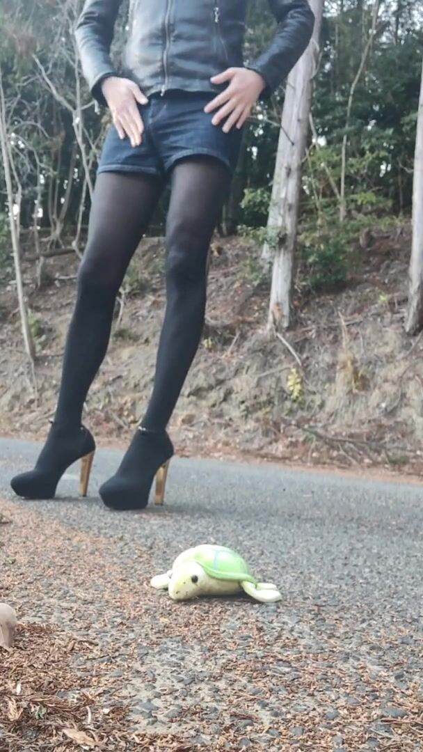 CUASH FETISH TO TRAMPLE A STUFFED ANIMAL IN OUTDOOR HEEL TRANSVESTITE