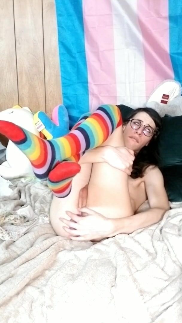 CUTE TRANS GIRL WEARING RAINBOW SOCKS