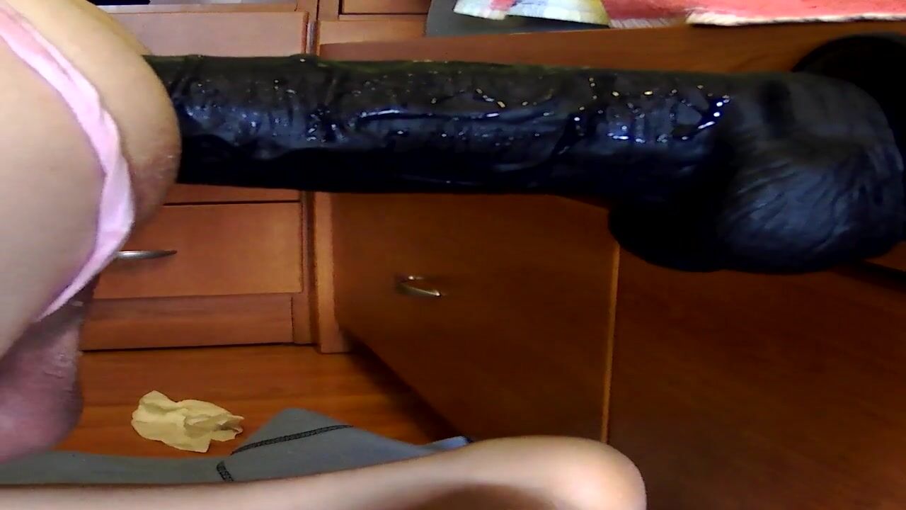 . Sorry for the video quality of the end!! CD, crossdresser, Inserting my black monster cock! Hot anal in thong, jerking off on my body, plug, close up, toy, dildo