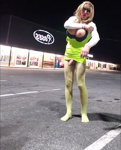 . DeeDee out for a walk in a hot outfit. Finds a quiet spot to take off some of her outfit and suck on her dildos