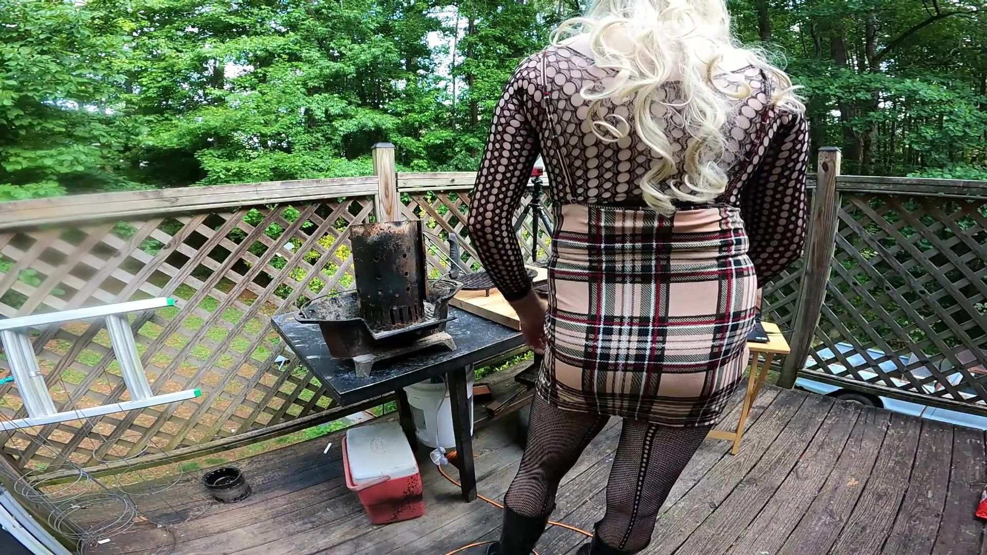 HUGE FAKE TITS CROSS DRESSER MANNING THE GRILL CUMSHOT FINISH