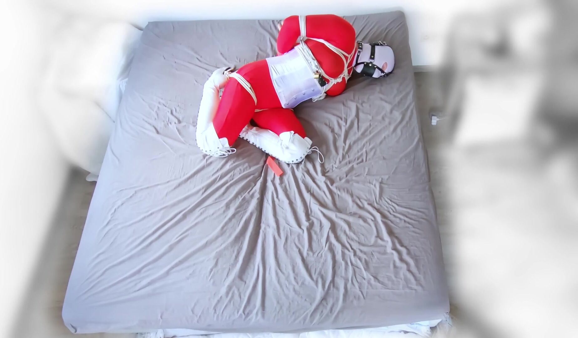 RED CATSUIT WHITE BOOTS SELFBONDAGE