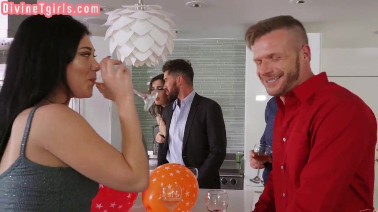 DIVINE BUSTY TS MILF BAREBACKED BY LOVER BE4 BATHROOM BJ