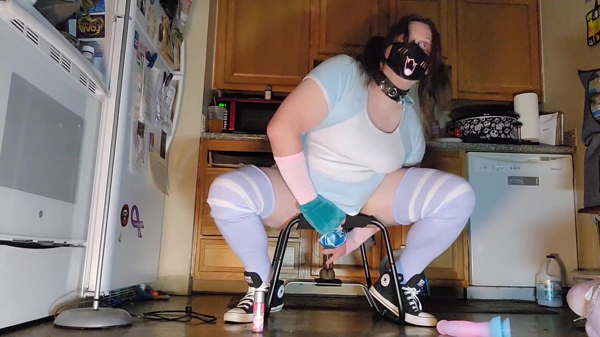 SISSY SUCKS RIDES DILDO & STROKES ON CHAIR