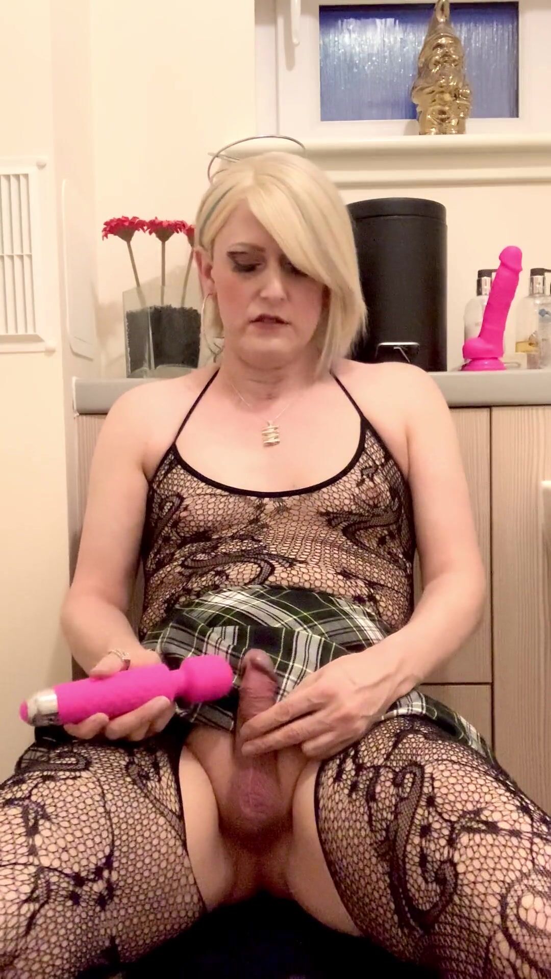 . Horny slut cum-shot! Dressed in my lace body-stocking and schoolgirl mini skirt, watch as I tease my cock with my wand, bend over and take multiple dildo's inside my tight ass, then ass to mouth and taste my sweet pussy juice, finally shooting my cum all over the toilet seat and licking it all up! Lots of filthy dirty chat to get your cock hard ;-)