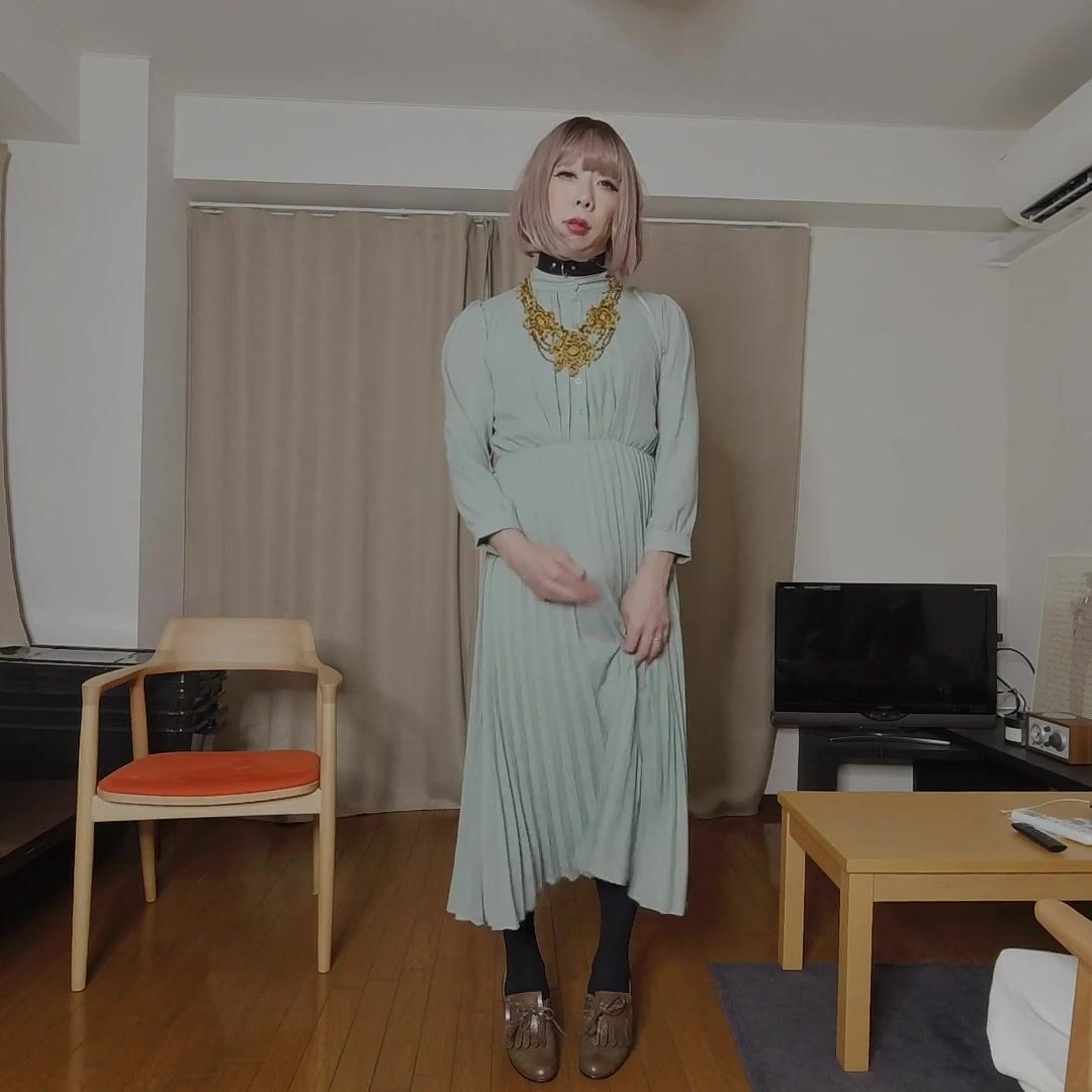 JAPANESE CROSSDRESSER CUMSHOTS WHEN EXCITED BY GENITALS TOUCHED BY LONG DRESS.