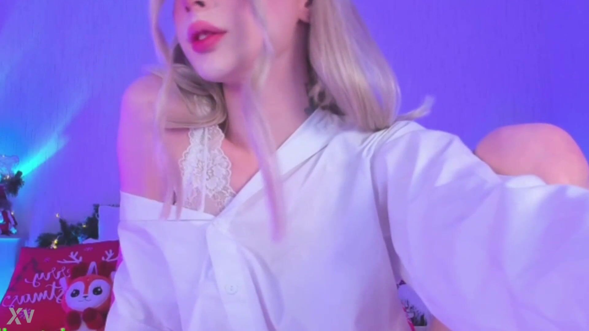 ladyboy sexy striptease and play her cock and balls