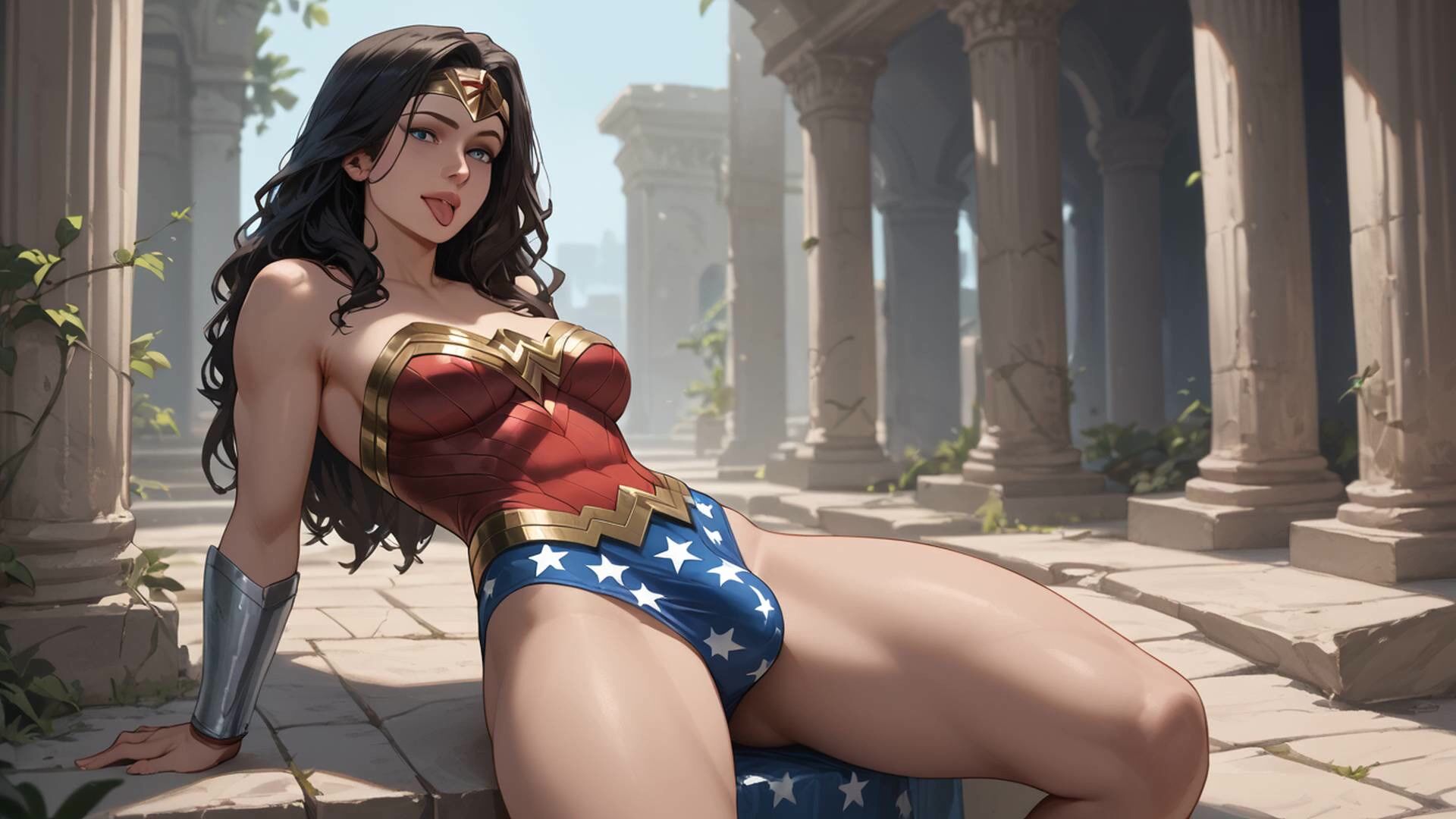 . Futanari Wonder Woman Masturbating Selfsuck Cumshots Futa DC Comics Cartoon