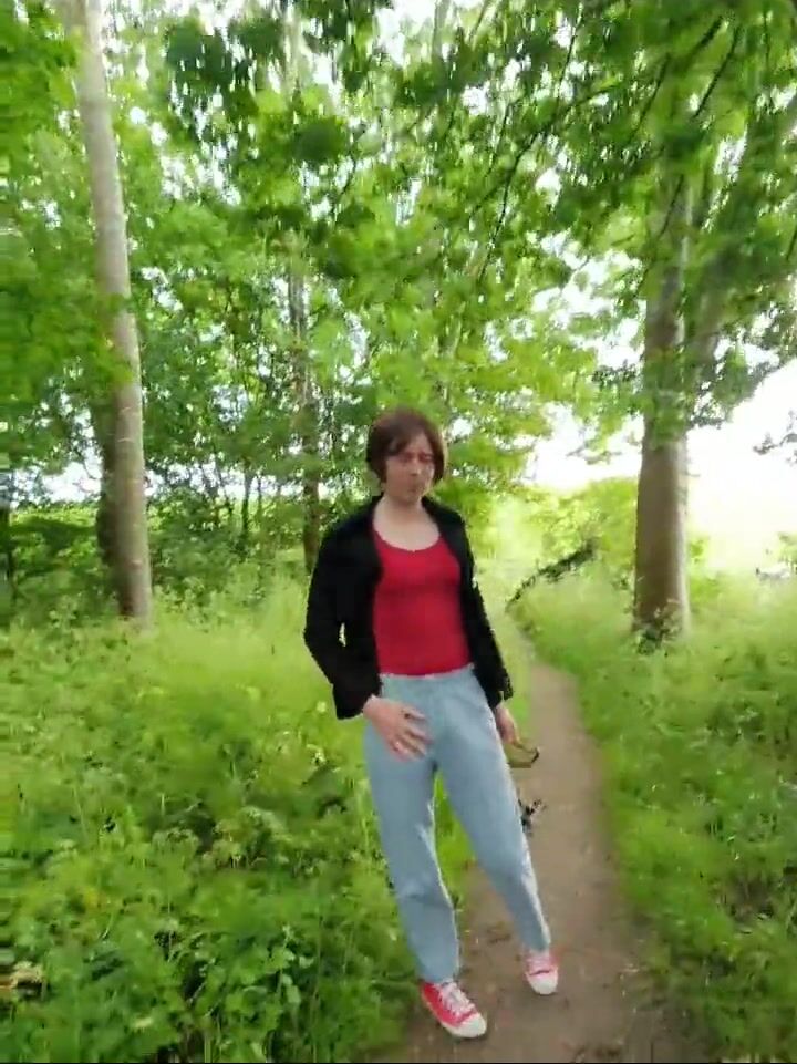 . Went on a hike dressed in mini skirt and high top Converse sneakers. Walking around and was so horny that I let me filmed when I was playing on a bench