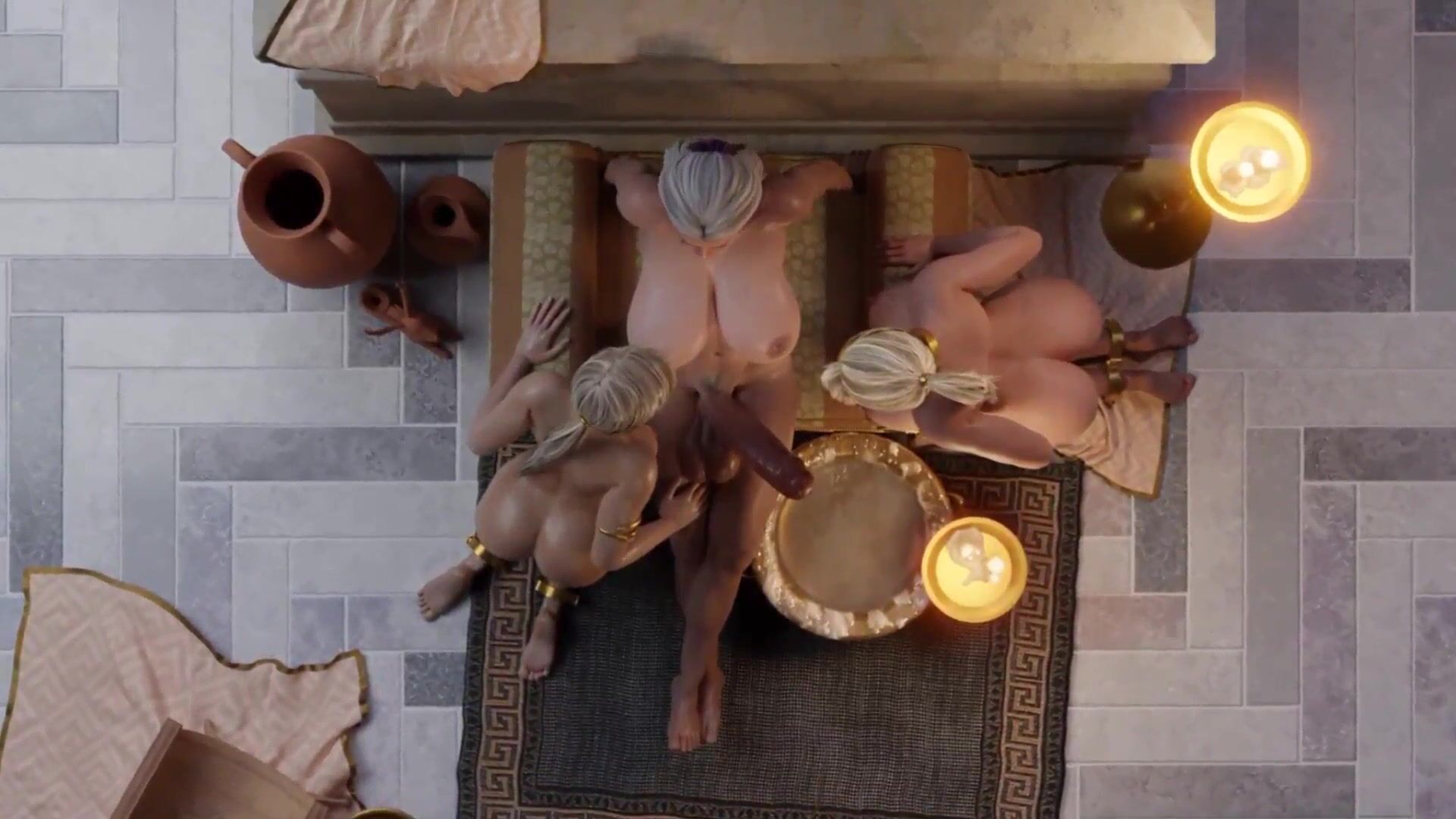 WATCH TWO SLAVES TAKE TURNS LICKING A MASSIVE MILF'S BIG DICK IN A HOT 3SOME FUTA PORNO