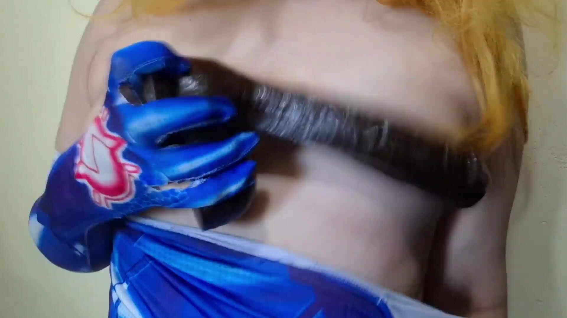 SAMUS SOFT TIT-SLAPPING WITH A BBC DILDO AND LACTATING HER PUFFY NIPPLES IN SEXY BODYSUIT