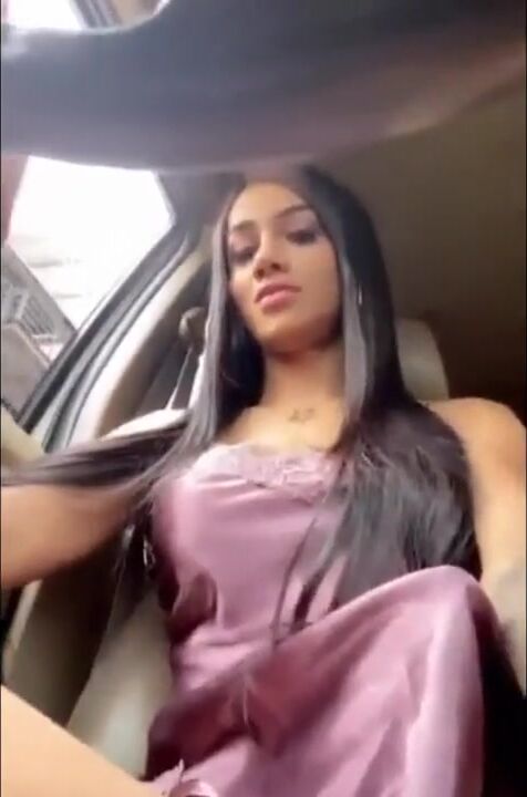 YOLANDA IS A VERY HORNY SHEMALE WANKING IT IN THE CAR AND BUSTED
