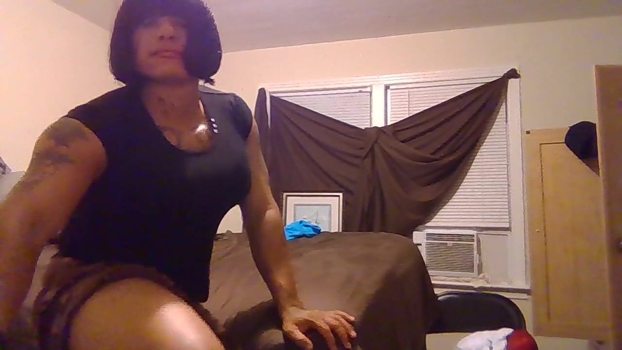 SEXY TRANNY SHAKING THICK ASS IN BROWN MINISKIRT