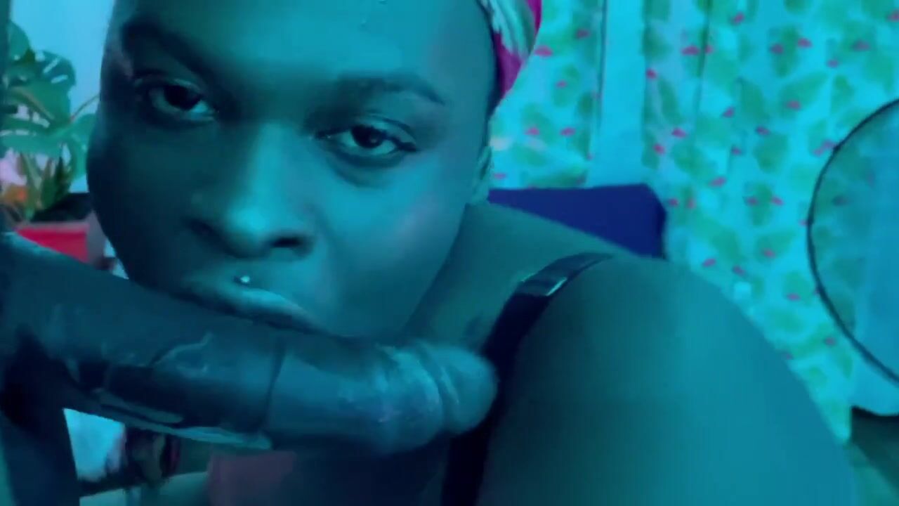 MY EBONY TRANS GIRLFRIEND GIVING ME BLOWJOB HANDSFREE